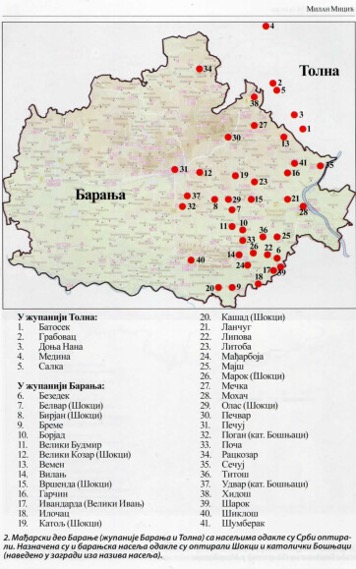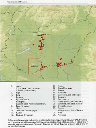 Карте бр. 7. и 8. Насеља из којих је део становништва оптирао за Краљевину СХС (Пера Ластић и Тибор Фуксел у Милан Мицић: Срби оптанти у Краљевини Југославији 1921–1941, Српски институт, Будимпешта, 2020)