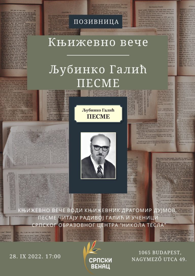 28. септембра 2022. године у Културном и медијском центру „Српски венац“ одржаће се књижевно вече поводом 100. годишњице рођења некадашњег ...
